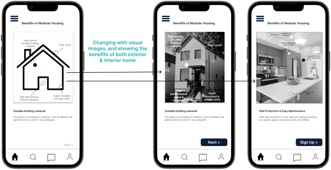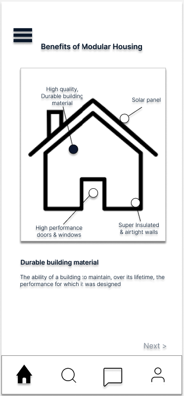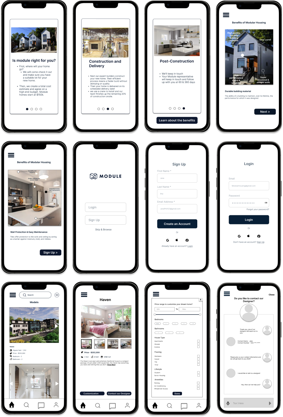 The goal of the project is to develop an app that enhances the experience for potential and current homebuyers of module housing by providing detailed information, tracking features and interactive capabilities. Module housing aim is to create an app and attract new homebuyers to showcase the company’s work.